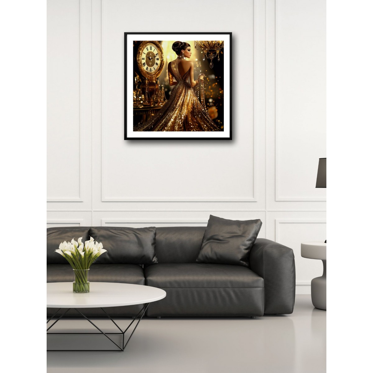 The clock in the background symbolizes eternity, while the overall composition evokes a sense of celebration and grandeur. This print will become a striking centerpiece in any interior, capturing attention with its elegance and festive atmosphere.